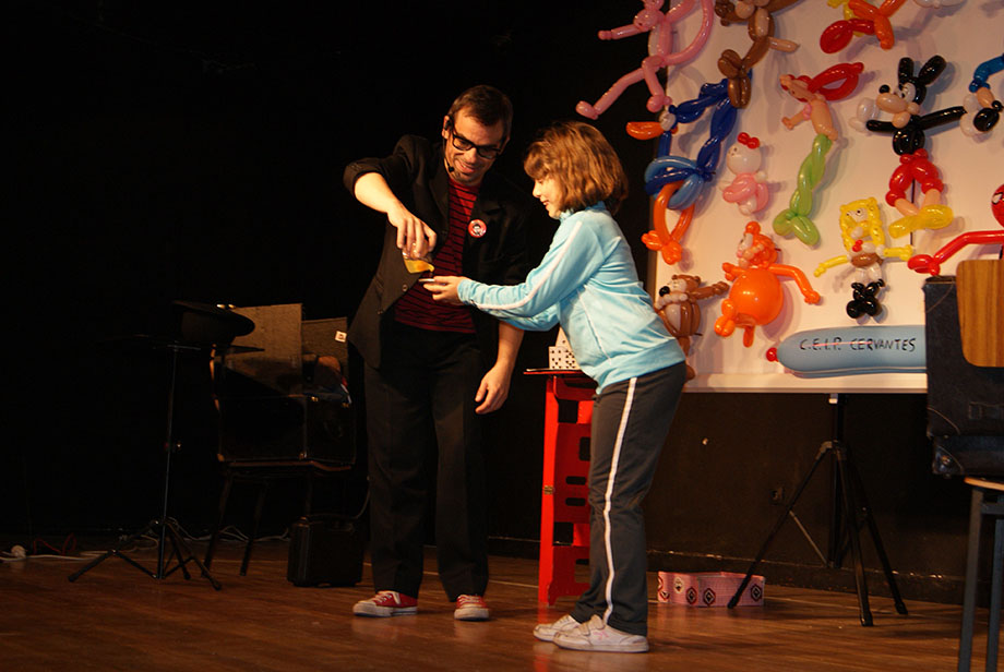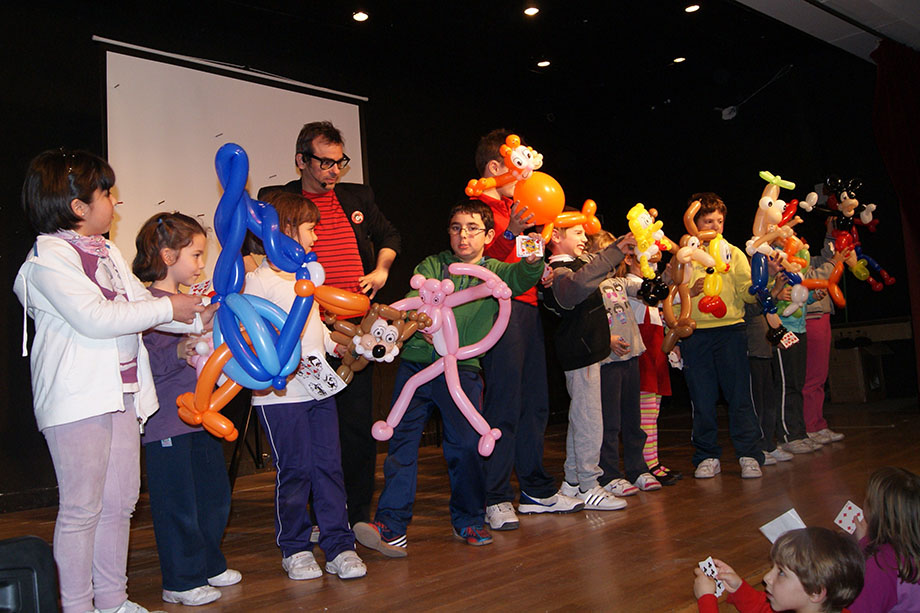 - El mago utiliza técnicas de clown para conseguir la hilaridad continua de los niños que participan activamente en los distintos trucos.
